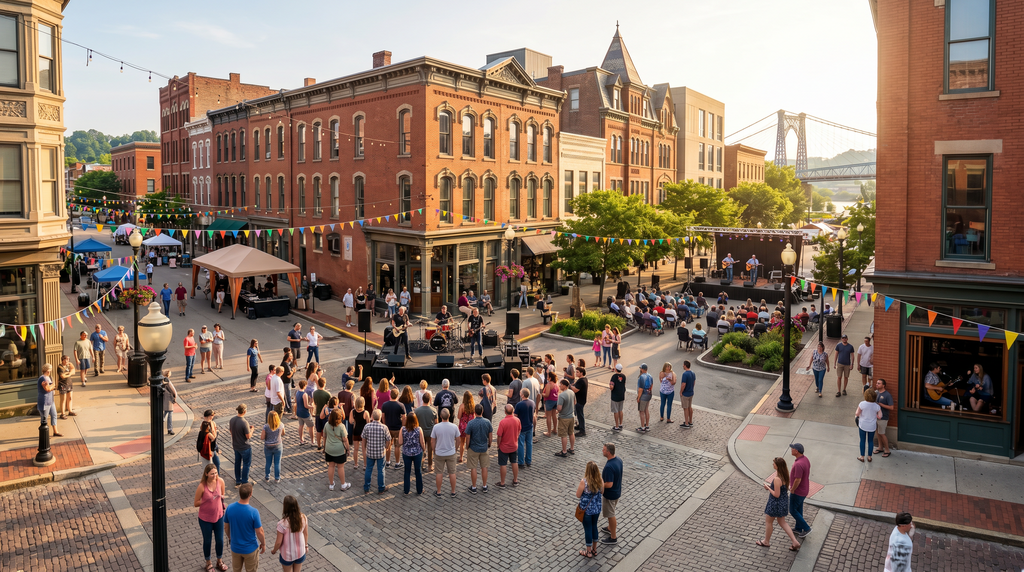 Downtown Wheeling is easily accessible by car, and there are public transportation options available. Please check our 'Travel & Directions' section for detailed information on getting here.